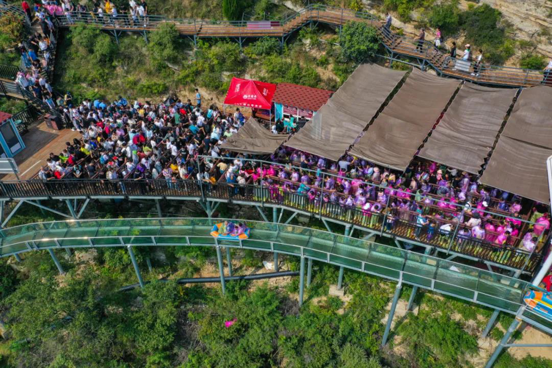 十一黃金周前各景區(qū)就開始持續(xù)刷爆各大媒體。天蒙景區(qū)、新甫山景區(qū)、紅葉柿巖景區(qū)連續(xù)多日保持當(dāng)?shù)囟兑敉怯瓮嫒藲獍竦谝?。各景區(qū)還通過短視頻平臺進行直播,形成了線上線下聯(lián)動的互動方式,游客實現(xiàn)足不出戶就可“云旅游”。其中,天蒙景區(qū)抖音短視頻“用最美中國紅向祖國告白”,僅一天在抖音累計播放量達到300萬次。天蒙景區(qū)索橋上國旗飄揚場景,被中央電視臺、《人民日報》等權(quán)威媒體報道,成為國慶期間景區(qū)文旅宣傳爆點。