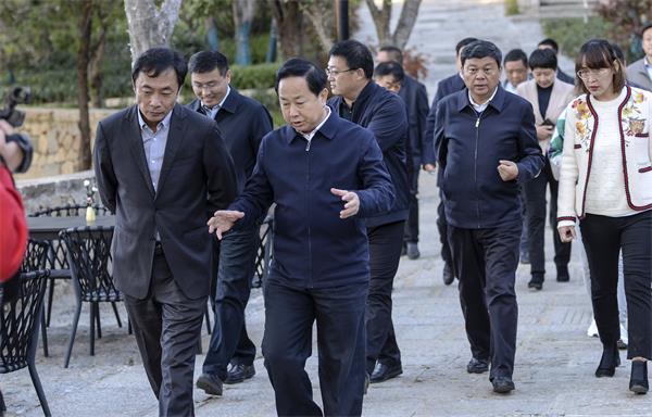 李希信一行首先來(lái)到山東省鄉(xiāng)村振興齊魯樣板研究院,詳細(xì)了解九女峰鄉(xiāng)村振興項(xiàng)目整體情況,并就項(xiàng)目片區(qū)堅(jiān)持黨建引領(lǐng)助推鄉(xiāng)村振興工作情況進(jìn)行深入了解。李希信對(duì)魯商集團(tuán)、國(guó)欣文旅實(shí)施鄉(xiāng)村振興戰(zhàn)略、打造鄉(xiāng)村振興齊魯樣板的做法給予肯定,特別是對(duì)九女峰鄉(xiāng)村振興項(xiàng)目以提升組織力為核心,以鄉(xiāng)村振興為目標(biāo),以產(chǎn)業(yè)發(fā)展為紐帶,將區(qū)域內(nèi)19個(gè)村串聯(lián)成整體發(fā)展集群,通過(guò)加強(qiáng)與片區(qū)的聯(lián)動(dòng)共建,不斷提升黨建引領(lǐng)力的做法表示認(rèn)可。李希信強(qiáng)調(diào),地方黨委及企業(yè)組織要不斷探索黨建實(shí)體化機(jī)制、創(chuàng)新工作新模式,以黨建引領(lǐng)助力打造鄉(xiāng)村振興的齊魯樣板。