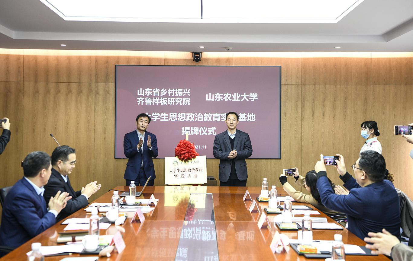 在簽約暨揭牌儀式上,雙方簽署了《共建協(xié)議書》,并為“山東農(nóng)業(yè)大學(xué)大學(xué)生思想政治教育實(shí)踐基地”揭牌。