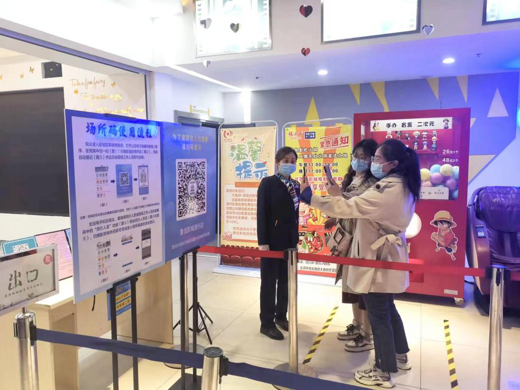 各地文旅影城在收到復(fù)工消息后,便第一時(shí)間通過“分區(qū)劃塊、責(zé)任到人”的形式,經(jīng)當(dāng)?shù)叵嚓P(guān)部門驗(yàn)收合格后正式復(fù)工復(fù)產(chǎn)。各影城以貫徹山東省疫情防控指導(dǎo)要求為基礎(chǔ),結(jié)合省內(nèi)疫情防控“場(chǎng)所碼”使用規(guī)定,在影城設(shè)置唯一出入口,每日安排專人對(duì)所有入場(chǎng)人員進(jìn)行測(cè)溫、掃碼等防疫檢查和引導(dǎo)工作,嚴(yán)格落實(shí)“逢入必掃”“逢人必檢”的精準(zhǔn)防控原則。同時(shí),為確保給顧客提供一個(gè)安全、舒心的觀影環(huán)境,各影城對(duì)影院環(huán)境進(jìn)行了全面清掃與消殺,確保不留任何死角,并重新梳理檢查影城各類物資儲(chǔ)備及防疫用品,確保數(shù)量充足、質(zhì)量完好。