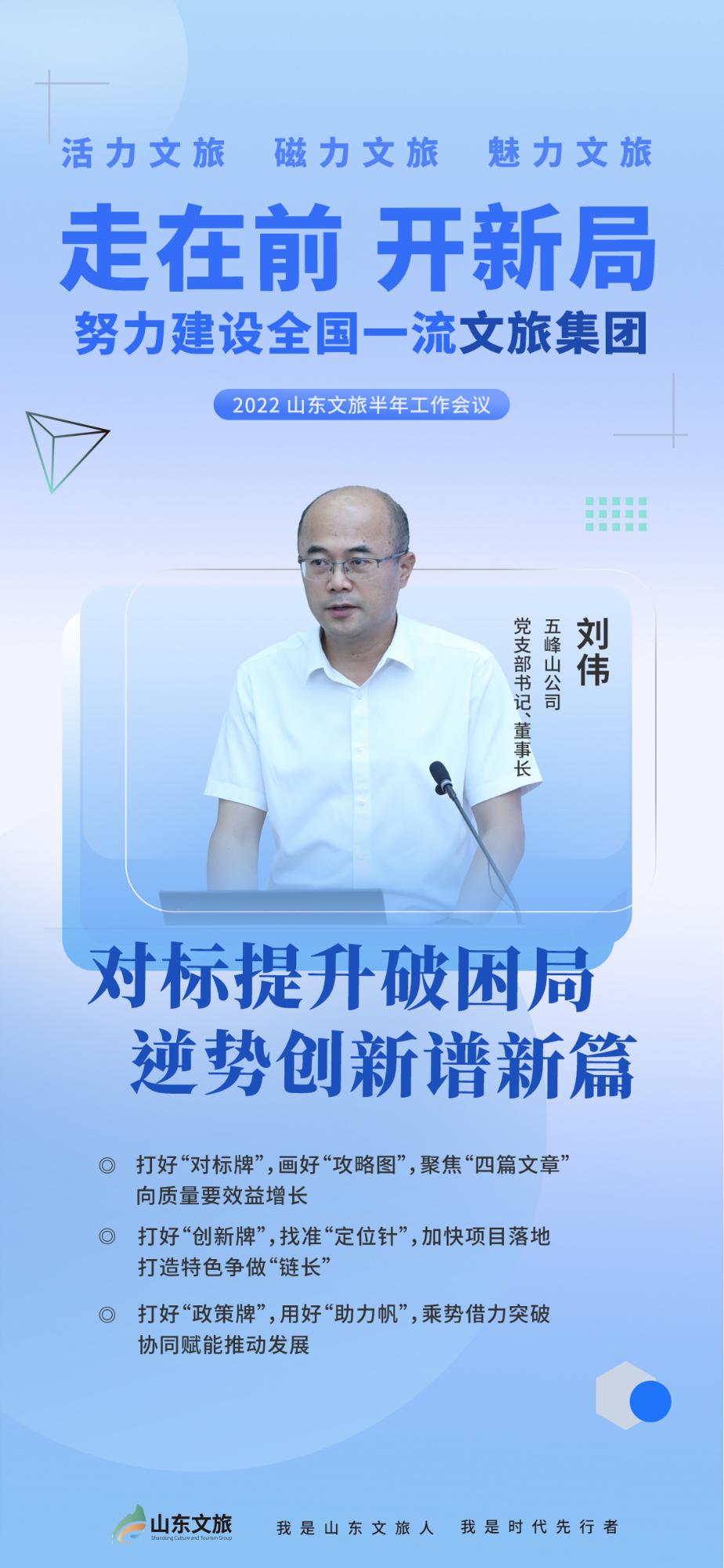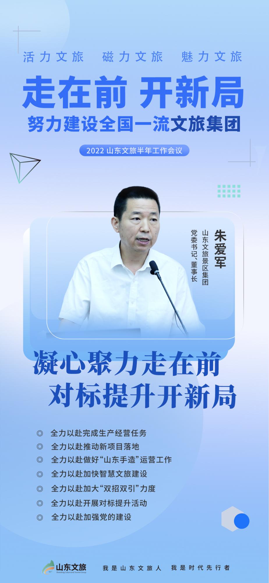 在山東文旅半年經(jīng)濟工作分析會上,集團黨委書記、董事長高洪雷對集團2022年下半年工作進行重點部署,要深入學習貫徹黨的二十大精神,堅持以習近平總書記“三個走在前”的重要指示為根本遵循,以建設現(xiàn)代化經(jīng)濟文化強省為己任,以“對標提升年”為抓手,按照“54331”的工作思路,實施平臺化、智能化、精品化、生態(tài)化、國際化“五大戰(zhàn)略”,做好鄉(xiāng)村振興、黃河戰(zhàn)略、海洋強省、山東手造“四篇文章”,實現(xiàn)由塊到鏈、由投資到投智、由競爭到協(xié)同“三個轉(zhuǎn)變”,形成活力文旅、磁力文旅、魅力文旅“三力文旅”,全力打造具有“世界眼光、國際標準、全國一流、山東特色”的文旅集團。