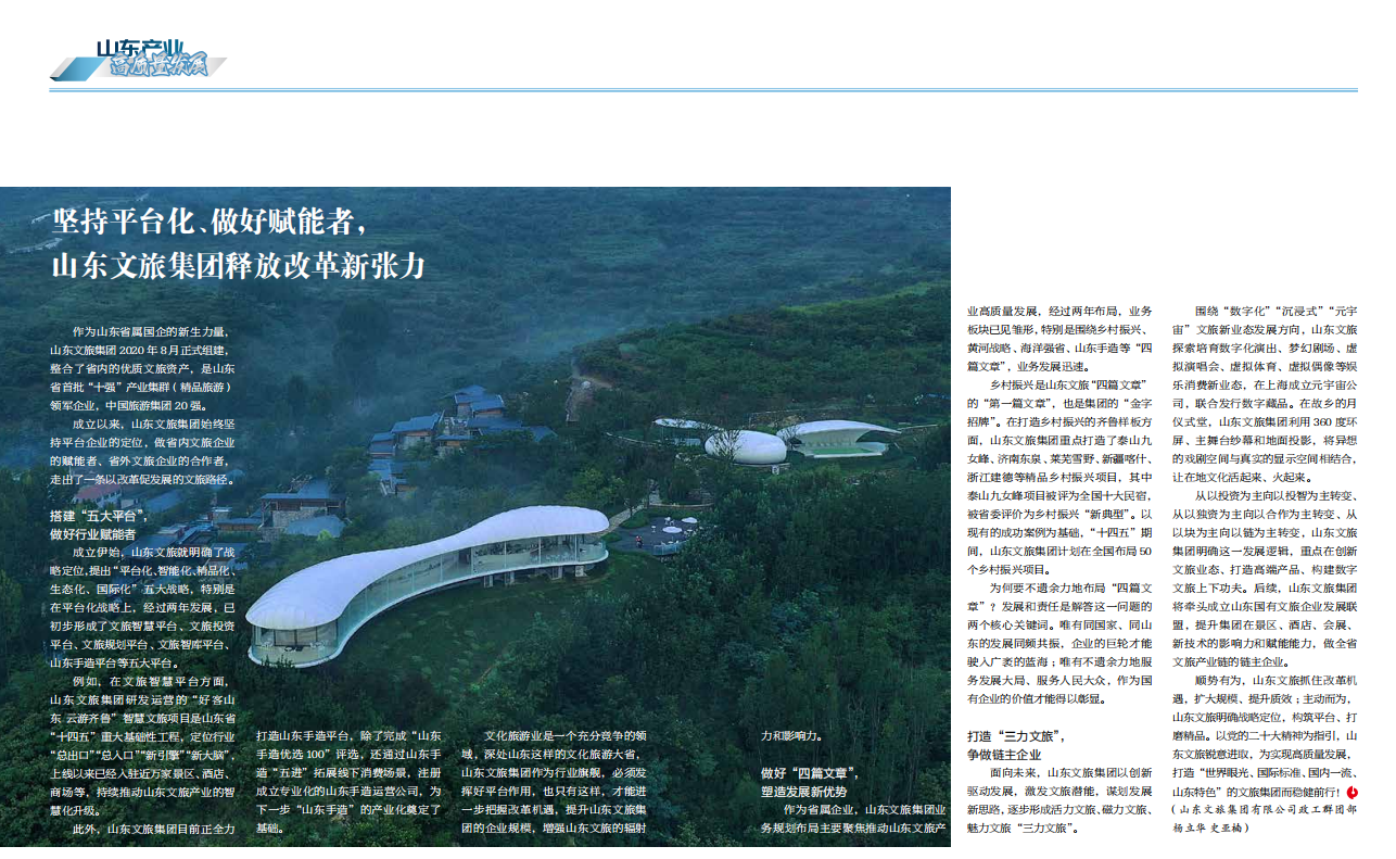 成立以來,山東文旅集團始終堅持平臺企業(yè)的定位,做省內(nèi)文旅企業(yè)的賦能者,省外文旅企業(yè)的合作者,走出了一條以改革促發(fā)展的文旅路徑。