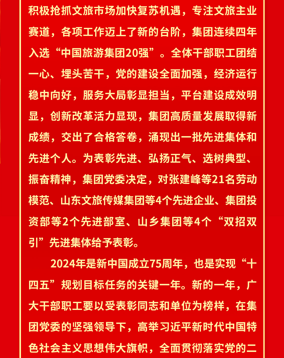 山東文旅集團2023年度先進集體和先進個人榮譽榜揭曉