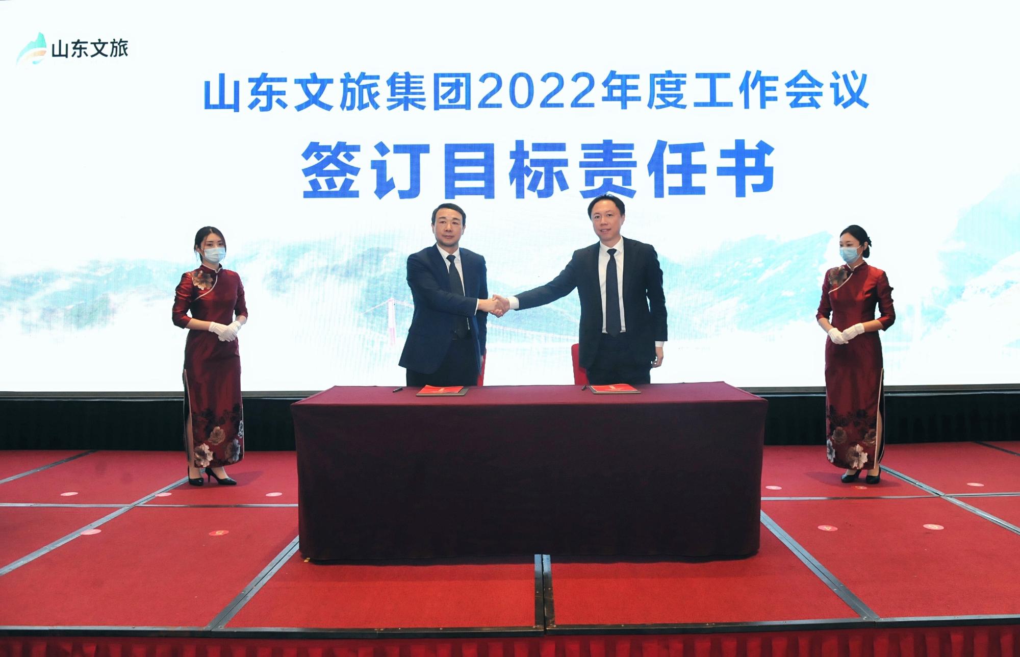 高洪雷對2021年集團各單位、各部門取得的成績給予充分肯定。過去的一年,是山東文旅集團基礎(chǔ)建設(shè)年。集團在省委、省政府和省國資委的堅強領(lǐng)導(dǎo)下,完成了既定目標(biāo)任務(wù),主要表現(xiàn)在八個方面。一是整體實力明顯增強。財務(wù)指標(biāo)增速良好,再次榮膺全國旅游集團20強,是山東10強產(chǎn)業(yè)領(lǐng)軍企業(yè)。二是服務(wù)大局作用凸顯。舉全集團之力打造鄉(xiāng)村振興齊魯樣板,九女峰項目被省委認定為山東鄉(xiāng)村振興“新典型”;杭州之江樸宿民居、雪野湖“萊野”民宿投入運營;積極參與黃河流域生態(tài)保護和高質(zhì)量發(fā)展,成功舉辦第三屆沿黃九省區(qū)文旅集團高峰論壇等一系列活動。三是智能文旅上線運行。“好客山東、云游齊魯”項目寫入省政府工作報告,列入2022年省政府“穩(wěn)中求進”高質(zhì)量發(fā)展清單;智能化酒店建設(shè)取得新突破。四是精品文旅異彩紛呈。天蒙山景區(qū)、山6創(chuàng)意園、明湖100、紅葉柿巖等精品項目成為旅游標(biāo)桿項目和網(wǎng)紅打卡地,集團知名度、美譽度、影響力顯著提升。五是平臺文旅邁出步伐。智庫平臺方面,設(shè)立山東省文旅產(chǎn)業(yè)創(chuàng)新研究院,與鄉(xiāng)村振興齊魯樣板研究院共同為文旅產(chǎn)業(yè)發(fā)展提供智力支持;投資平臺,成立齊魯產(chǎn)業(yè)投資公司,做大山東文旅投資集團,投資多個項目;規(guī)劃平臺方面,編制的齊長城等多個規(guī)劃得到文旅部肯定。六是企業(yè)文化開始破題。舉辦建黨百年合唱大賽等活動、征集企業(yè)標(biāo)識、推出了企業(yè)之歌、集團成功實現(xiàn)更名,形成求同、求新、求高的企業(yè)文化。七是“基礎(chǔ)建設(shè)年”取得實效。加大三項制度改革,實行“四個重用”“四個淘汰”;堅持五湖四海原則,持續(xù)推行職業(yè)經(jīng)理人改革。八是黨的建設(shè)全面加強。高標(biāo)準(zhǔn)落實“第一議題”制度,扎實開展黨史學(xué)習(xí)教育、十九屆六中全會精神學(xué)習(xí),忠誠擁護“兩個確立”,堅決做到“兩個維護”。制定黨委落實全面從嚴治黨主體責(zé)任制度,明確50項黨建任務(wù),嚴格落實考核督導(dǎo)。
