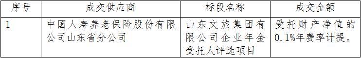 山東文旅集團(tuán)有限公司企業(yè)年金受托人評(píng)選項(xiàng)目中標(biāo)結(jié)果公告